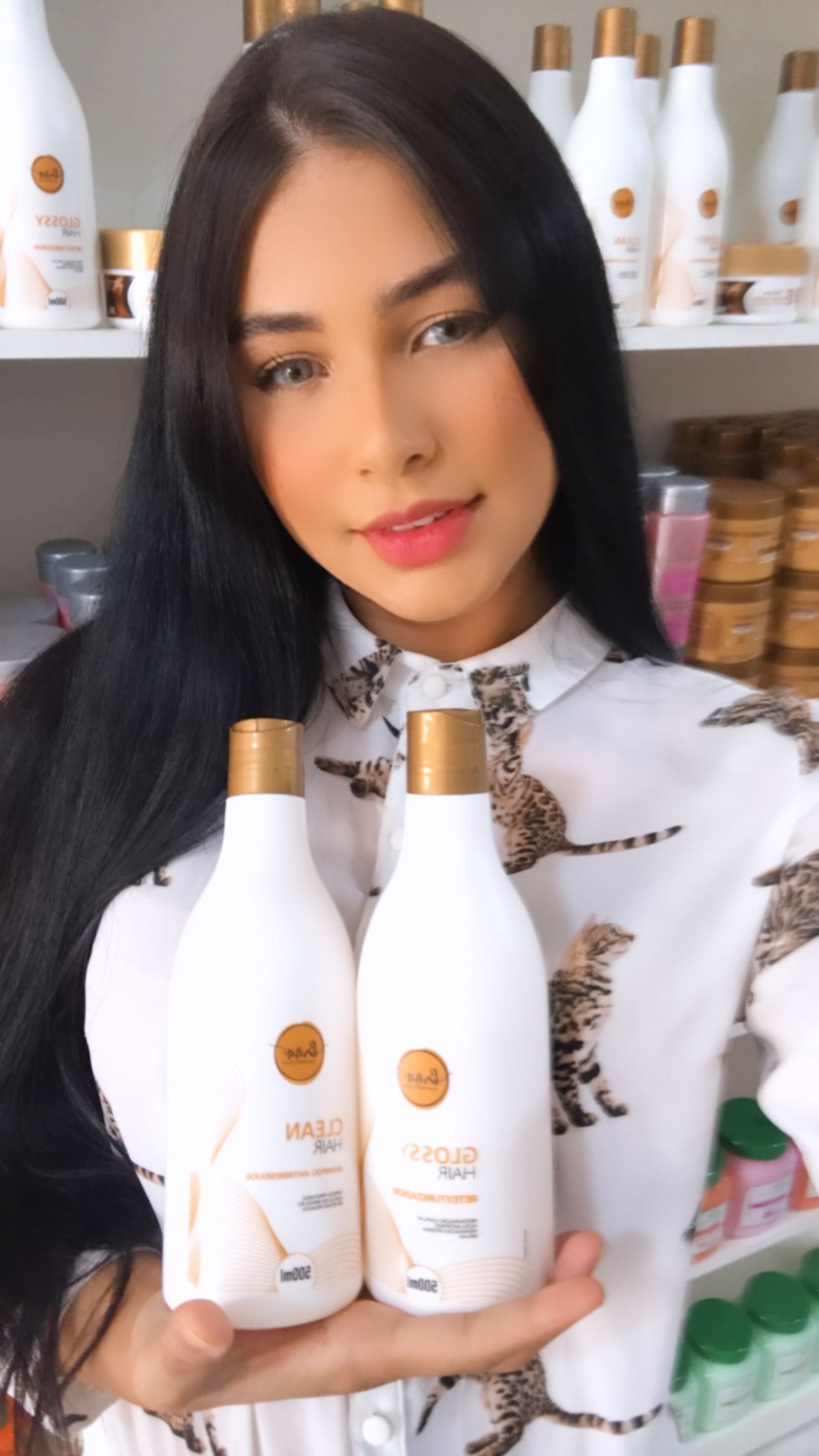 Uso Profissional, 100% livre de formol que proporciona cabelos alinhados, maleáveis, brilhosos e sedosos. Enriquecido com uma exclusiva tecnologia + Ativos que tratam os fios de forma profunda – sistema inteligente que promove reestruturação da fibra capilar – A Glossy Hair elimina o volume dos cabelos enquanto trata e reconstrói os fios danificados devido a ação do tempo.